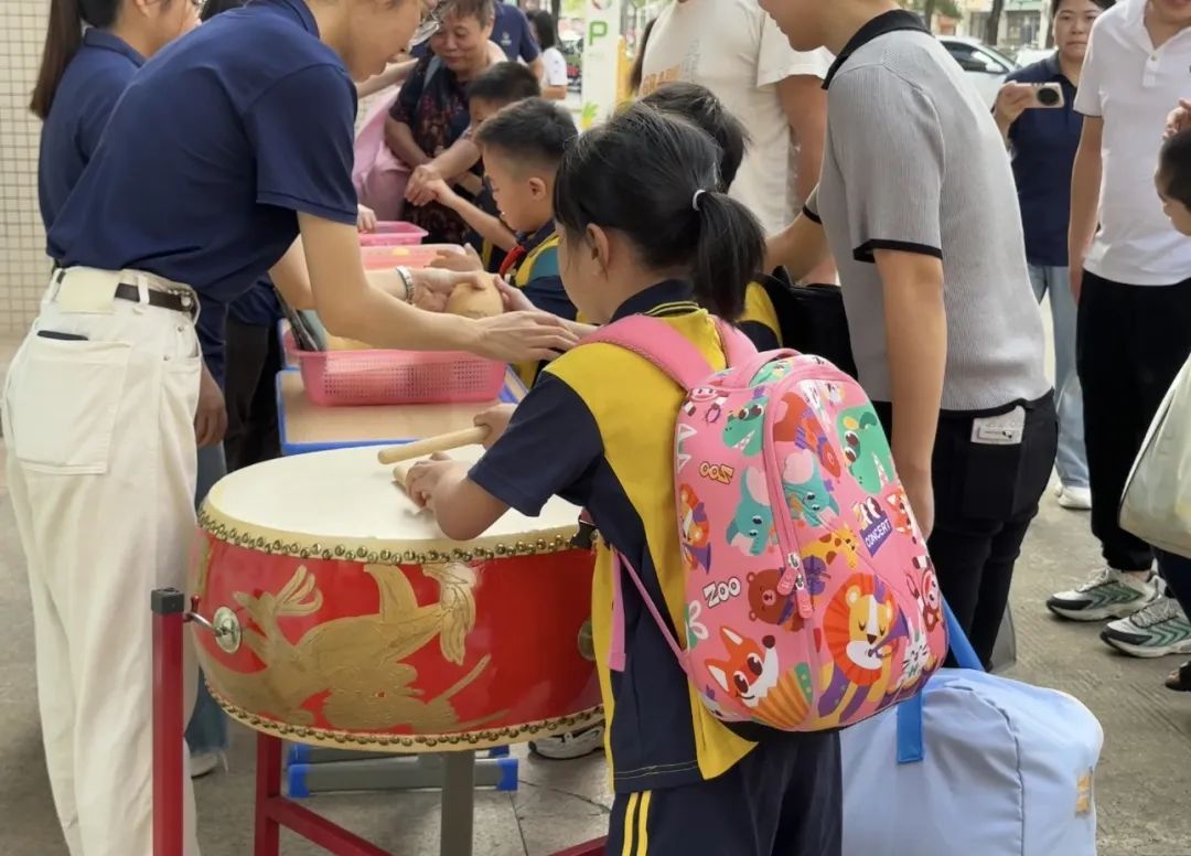 小萌新还轮流挥起鼓槌击响大鼓